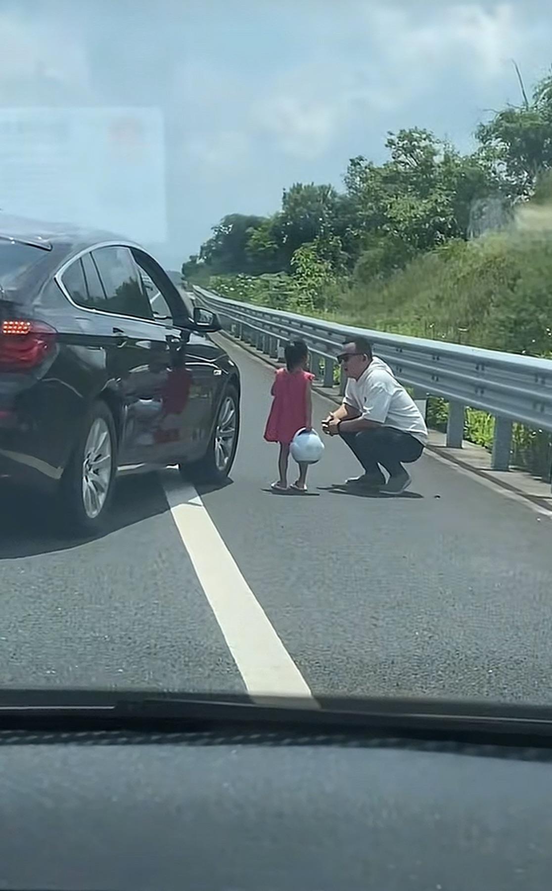 “當(dāng)時(shí)這個(gè)小孩走得暈暈乎乎,在機(jī)動車道上來回晃,走路都走不直了。我前面沒車,后面有幾臺車,因?yàn)楹⒆觽€(gè)頭太小怕后車看不見撞到,我就慢慢把車橫在路中間,讓后面的車先停下不要走。他們停下來后,我按喇叭讓小女孩走到應(yīng)急車道,然后把車靠邊。”張先生介紹,“當(dāng)時(shí)我問她你怎么一個(gè)人在這里,她嗚嗚就說不來話,我看她太熱了就把她帶上車,讓她坐在副駕因?yàn)楦鼪隹欤纸o她父母打電話。”