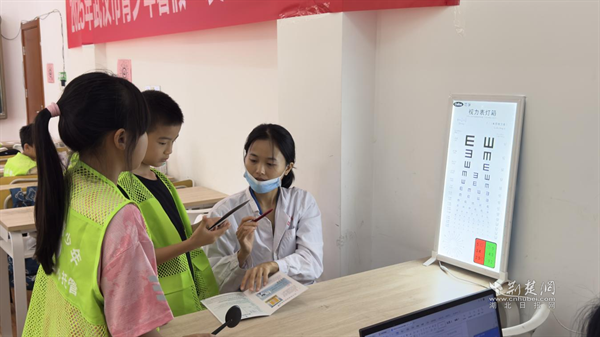 免費視力篩查環節,孩子們在社區團青小組成員的引導下有序排隊。醫護人員使用專業設備為20余名青少年進行了全面檢查。“你的視力有點波動,平時要注意控制電子產品使用時間,多做戶外運動。”針對不同青少年的視力狀況,醫護人員逐一提供了個性化的護眼建議。眼科醫師還特別提醒陪同的家長:“定期進行視力檢測和建立屈光發育檔案至關重要,能及早發現問題并采取科學干預措施,為孩子的視力健康筑起第一道防線。”