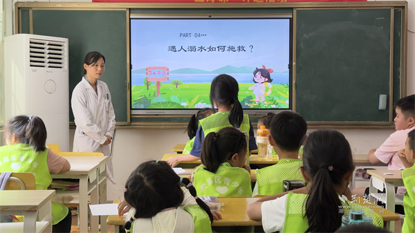 “這個暑假,讓我們對野泳說‘不’!”在“珍愛生命,預防溺水”安全教育課上,黃鶴樓街社區衛生服務中心的醫護人員通過真實案例視頻,直觀展示了溺水事故的突發性和危險性。“不私自下水、不擅自結伴游泳、不在無家長帶領時游泳、不到無安全設施水域游泳、不到不熟悉水域游泳、不盲目下水施救。”醫護人員還重點強調了防溺水“六不”原則,為孩子們敲響了暑期安全的警鐘。