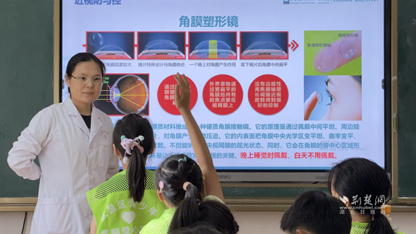 “同學們,讀寫姿勢要牢記‘一拳、一尺、一寸’原則——胸口離課桌一拳,眼睛離書本一尺,手指離筆尖一寸。”在“科學用眼,快樂學習”防近視公益活動現場,武漢艾格眼科醫院的專家通過生動形象的講解,向孩子們介紹了近視的成因、危害以及日常護眼的科學方法,并通過互動問答的形式,幫助孩子們糾正常見用眼誤區,養成科學用眼習慣。
