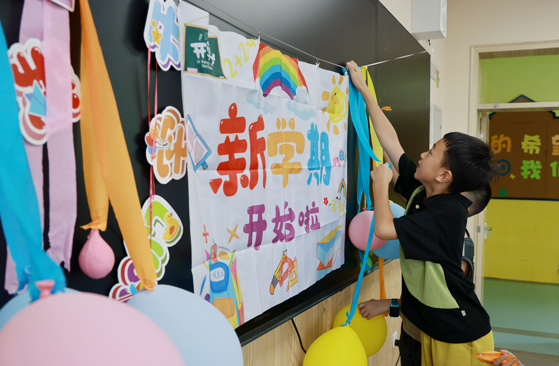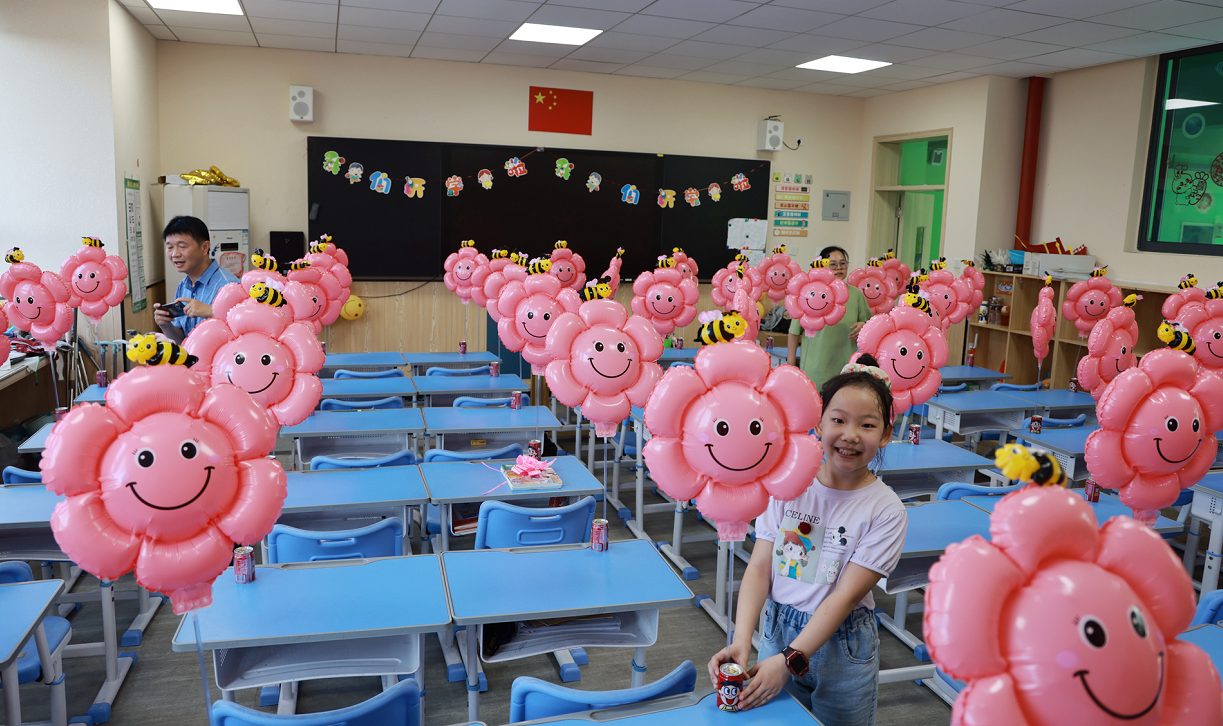 點(diǎn)軍區(qū)五龍小學(xué)孩子們忙著布置教室,營造溫馨的開學(xué)氛圍。(資料圖) 記者黃翔 攝