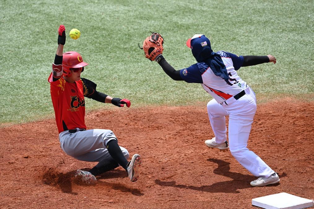 面對馬來西亞隊(duì),中國隊(duì)首局在兩名選手出局的情況下,由謝佳欣擊出安打,送任敏和顏思語回到本壘,取得2:0領(lǐng)先。第二局,中國隊(duì)投手柴燚楠給馬來西亞隊(duì)擊球員送出本場第四次“三振出局”,隨后,中國隊(duì)又在兩名隊(duì)員出局的情況下,由奚凱琳擊出兩分安打,中國隊(duì)手握4分領(lǐng)先優(yōu)勢。
