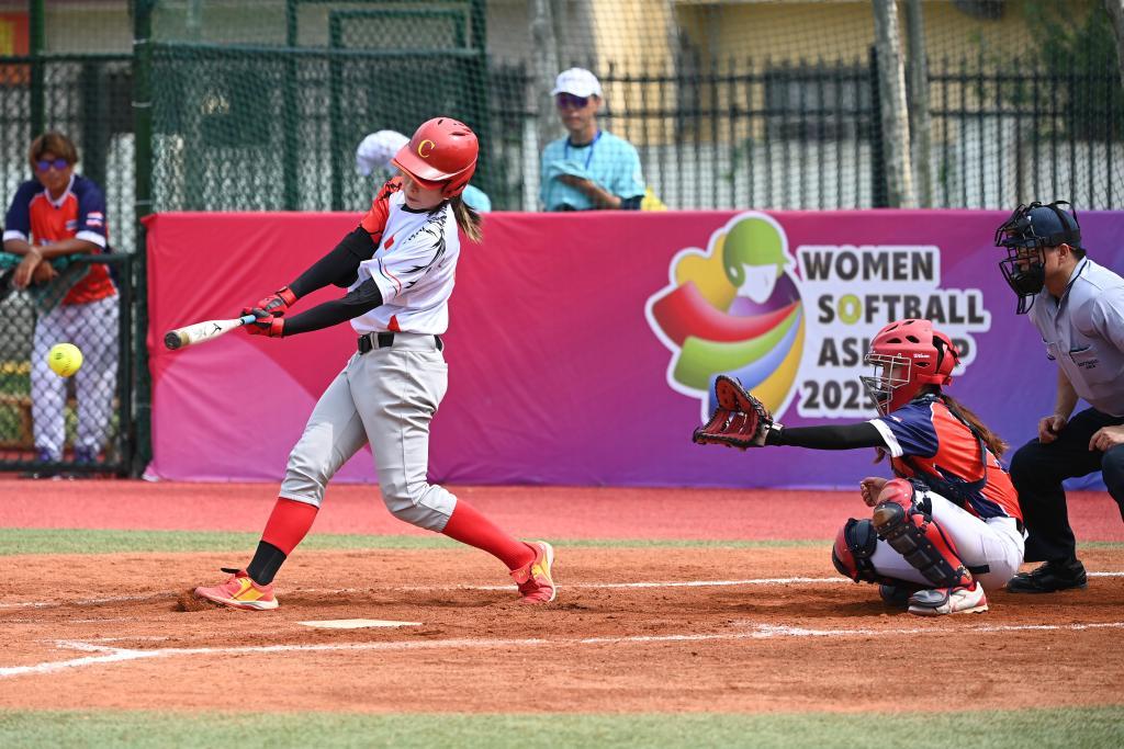 中國隊(duì)此后在第二局再得3分,并于第四局由桑于娟送出“再見安打”,贏得本屆亞洲杯上的第三場勝利。