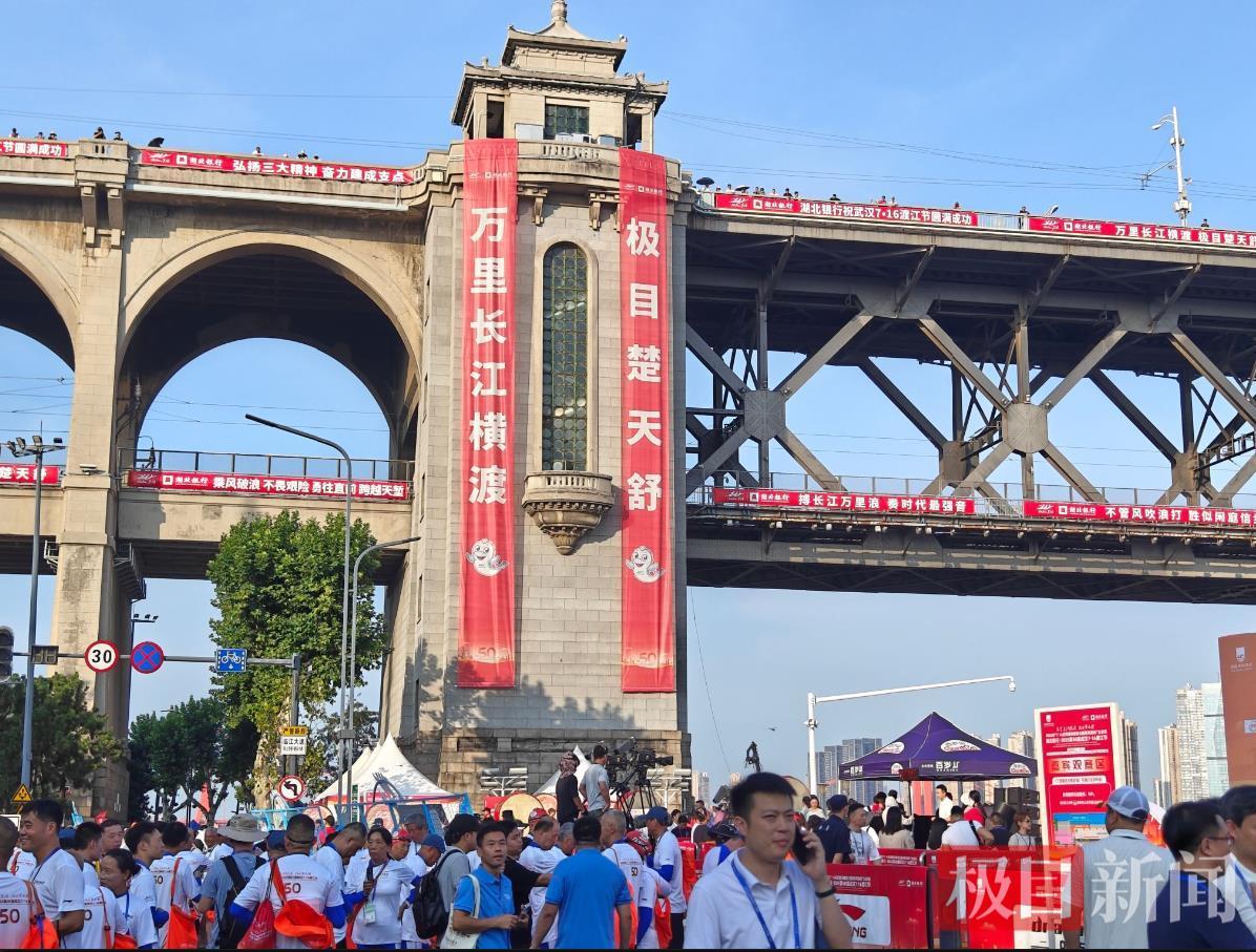 8時35分,參加群眾方隊橫渡長江活動的27支方隊陸續下水。橫渡隊員們從武昌漢陽門碼頭下水,在漢口江灘三陽廣場起水,游程約6000米。他們來自武漢本地以及廣東、山西、新鄉、鹽城、孝感等地,有2000余名。