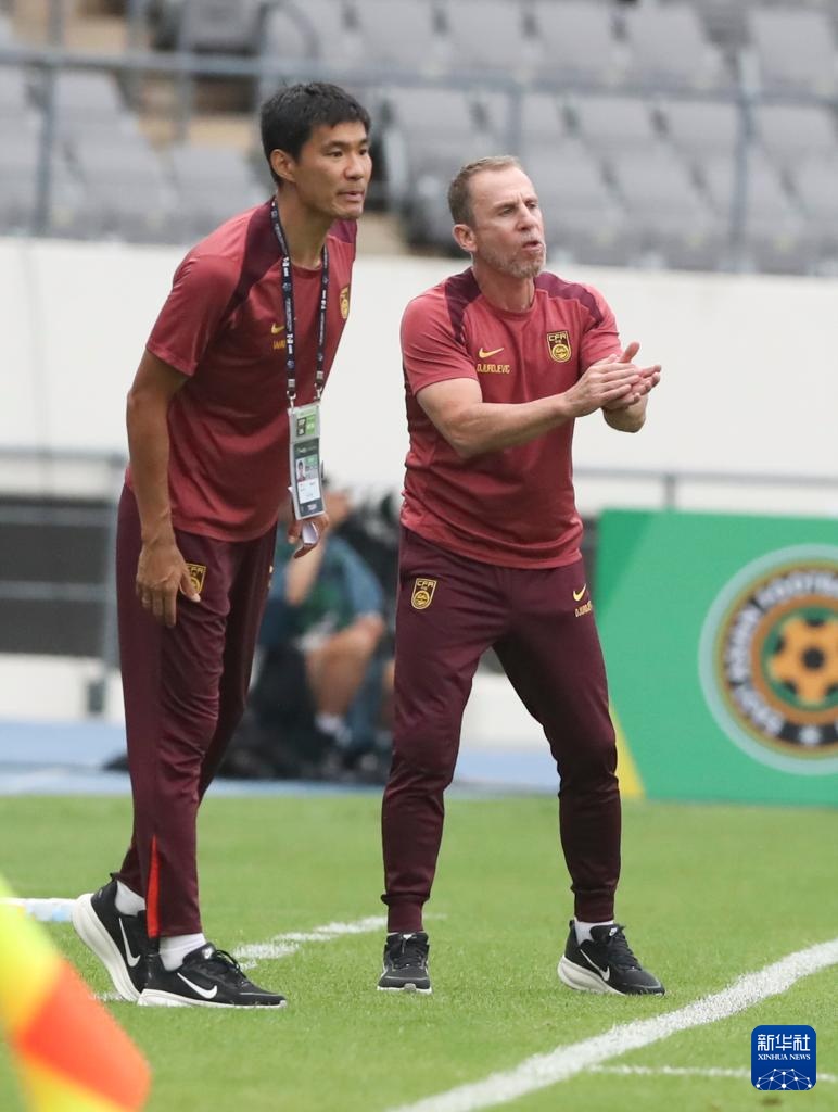 7月15日,中國隊代理主教練久爾杰維奇(右)在場邊指揮。新華社記者 姚琪琳 攝