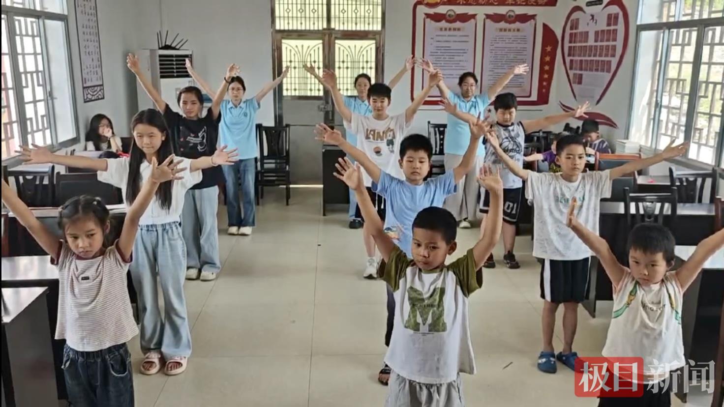 課后,志愿者們反復(fù)練習(xí)“單擺”“雙擺”,孩子們則化身“小老師”耐心糾正。
