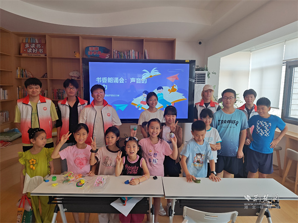 7月15日,讀書社區(qū)黃鶴書房里,“書香朗誦會”活動正如火如荼地進行。武漢理工大學(xué)創(chuàng)業(yè)學(xué)院的志愿者們通過朗誦視頻賞析,帶領(lǐng)孩子們感受語言藝術(shù)的魅力。“注意語速的變化,讀到激昂處可以適當(dāng)加快……”隨后,在志愿者的引導(dǎo)下,小朋友們紛紛踴躍上臺,朗誦經(jīng)典詩詞篇目,在實踐中掌握發(fā)音、節(jié)奏、神態(tài)等基本朗誦技巧,理解文字背后的文化內(nèi)涵,現(xiàn)場學(xué)習(xí)氛圍濃厚。