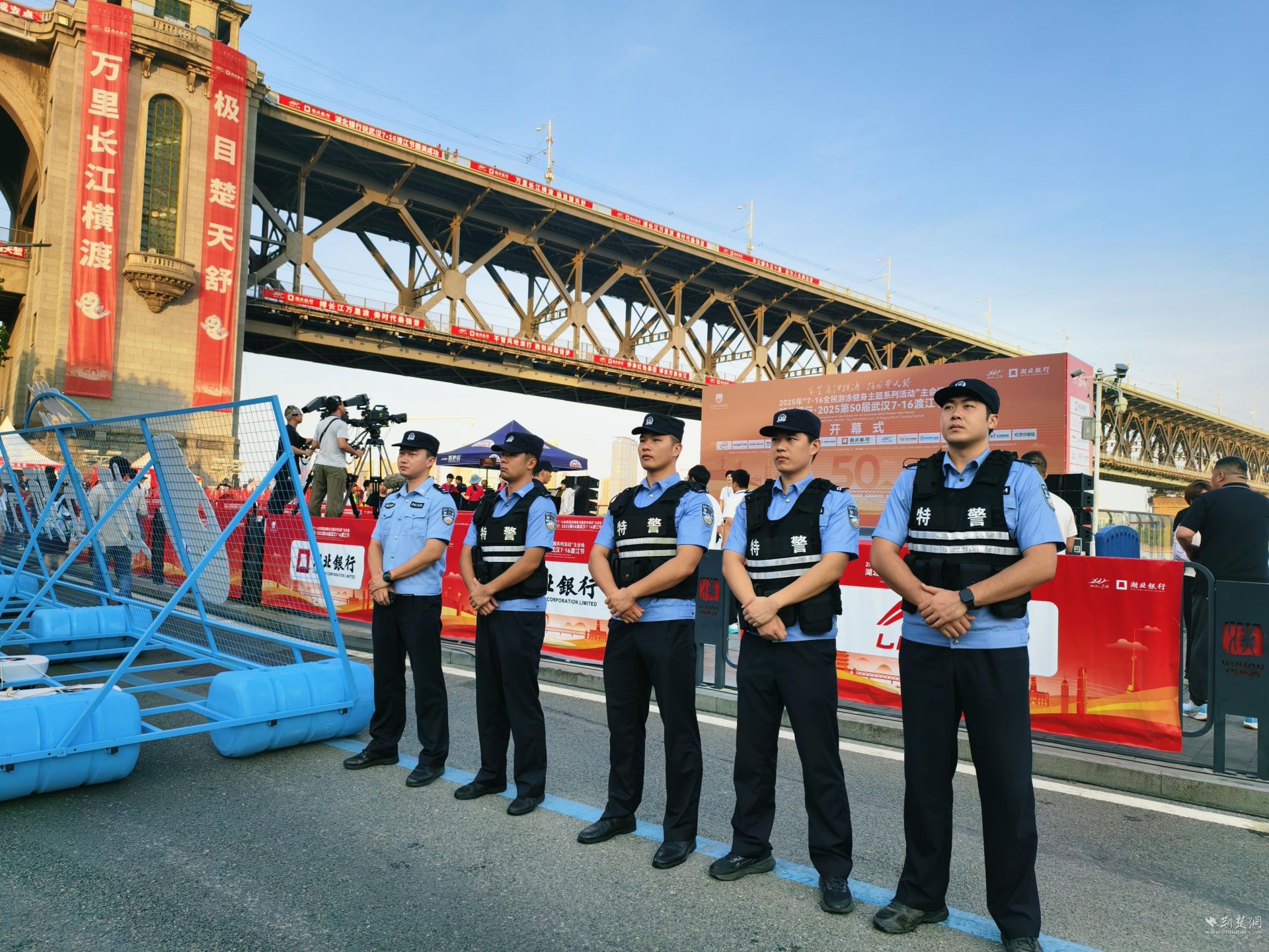 “大家往后退一點,注意安全!”漢陽區(qū)分局以起水點外圍、漢陽江灘長江水域一線及長江大橋橋面為重點,織密安保防線,實施全方位、無死角管控。全力保障選手安心競技、觀眾舒心觀賽。