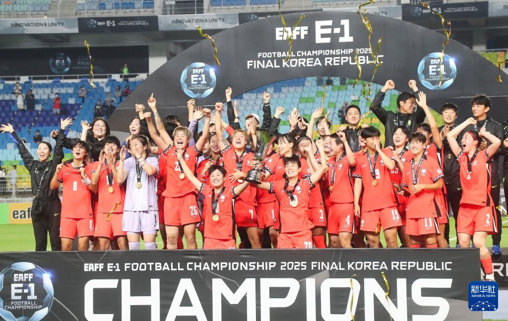 當日,在韓國水原舉行的2025年東亞足聯E-1足球錦標賽(東亞杯)女足第三輪比賽中,韓國隊2比0戰勝中國臺北隊,獲得冠軍。