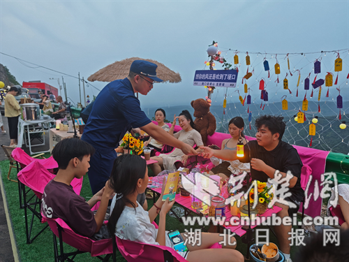 荊楚網(湖北日報網)訊(通訊員 楊麗)7月16日傍晚,湖北省荊門市圣境山夜市的霓虹燈亮起,烤串的滋滋聲、奶茶店的吆喝聲、孩子們的歡笑聲交織成熱鬧的市井交響。這里既是市民消暑休閑的新晉“打卡地”,也是荊門市東寶區消防救援大隊開展消防安全宣傳的“新陣地”——一輛滿載防火知識和安全禮品的消防宣傳車緩緩駛入夜市,為這片煙火氣加注了“安全砝碼”。