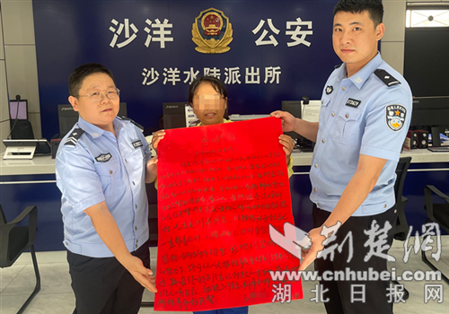 荊楚網(湖北日報網)訊(通訊員 姚薇 劉璠)2025年7月14日,沙洋縣某加油站員工王女士專程來到沙洋水陸派出所,將一封“超大號”的感謝信交到民警手中,對民警耐心幫助其追回未支付的油款表示感謝。