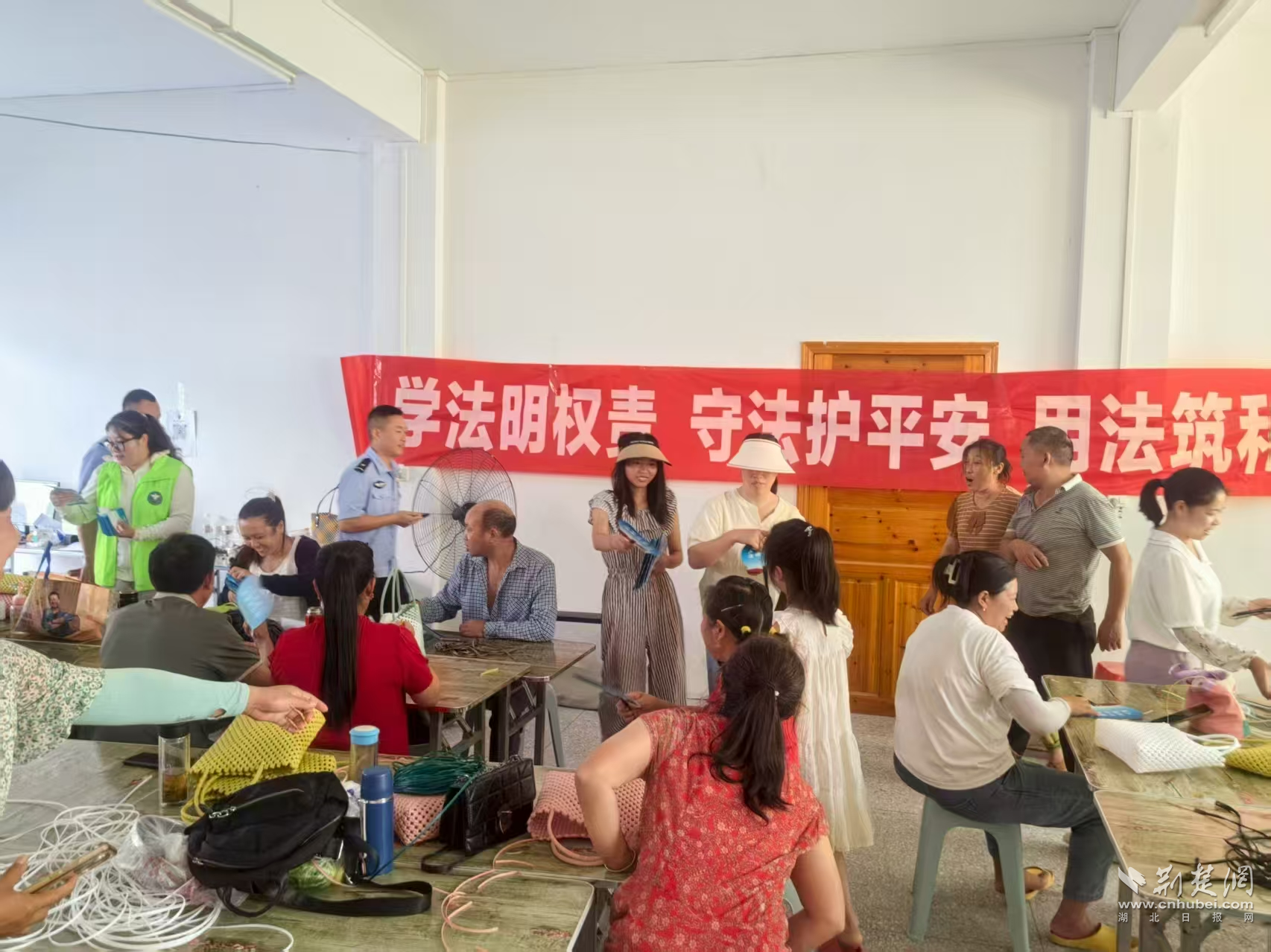 荊楚網(湖北日報網)訊(記者 周光潔 實習生 潘妍 通訊員 王琴)7月16日,為進一步提升群眾法治意識,拓寬普法覆蓋面,利川市司法局沙溪司法所聯合派出所以“手工編織訂單技能培訓”為載體,面向眾多手工編織愛好者,開展了《中華人民共和國社區矯正法》和反電詐“雙主題”的普法宣傳,讓群眾在學習技能的同時提升法治意識,實現“技藝”與“法益”雙收獲。