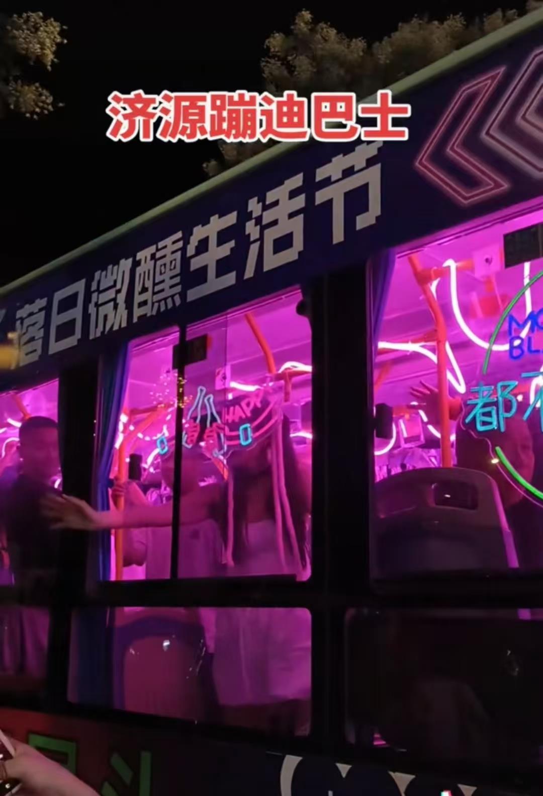7月16日,有網友發布視頻,河南濟源市夜間有公交車被改造成“蹦迪巴士”,巴士沿固定路線行駛,運營時間為每晚7時到9時。“蹦迪巴士”主辦方濟源寶龍廣場工作人員稱,這是為宣傳商場活動,活動將持續3天。