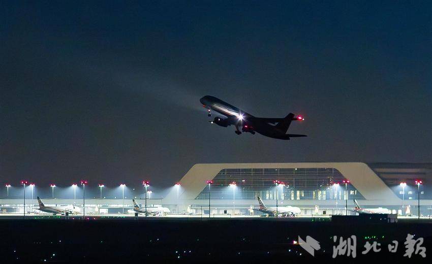 清晨5時許,載滿貨物的貨機從鄂州花湖國際機場飛往各地。