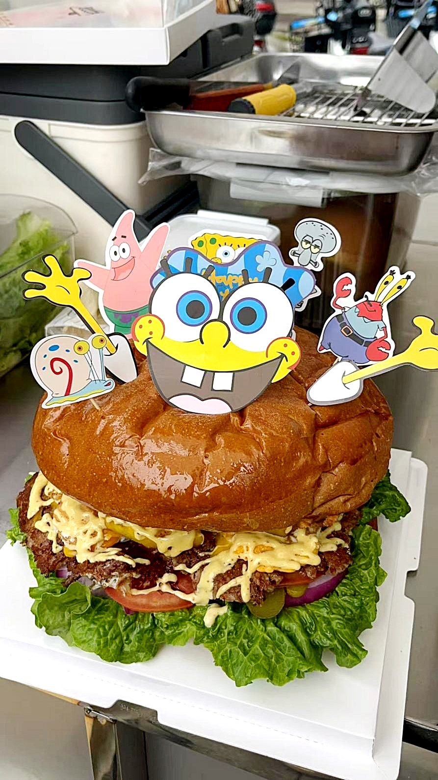 漢堡也能當生日蛋糕!7月16日晚,在武漢市江岸區三陽路的RICH BURGER招財進堡門店,有市民正在定制9寸的生日大漢堡,還要求插上海綿寶寶的擺件。