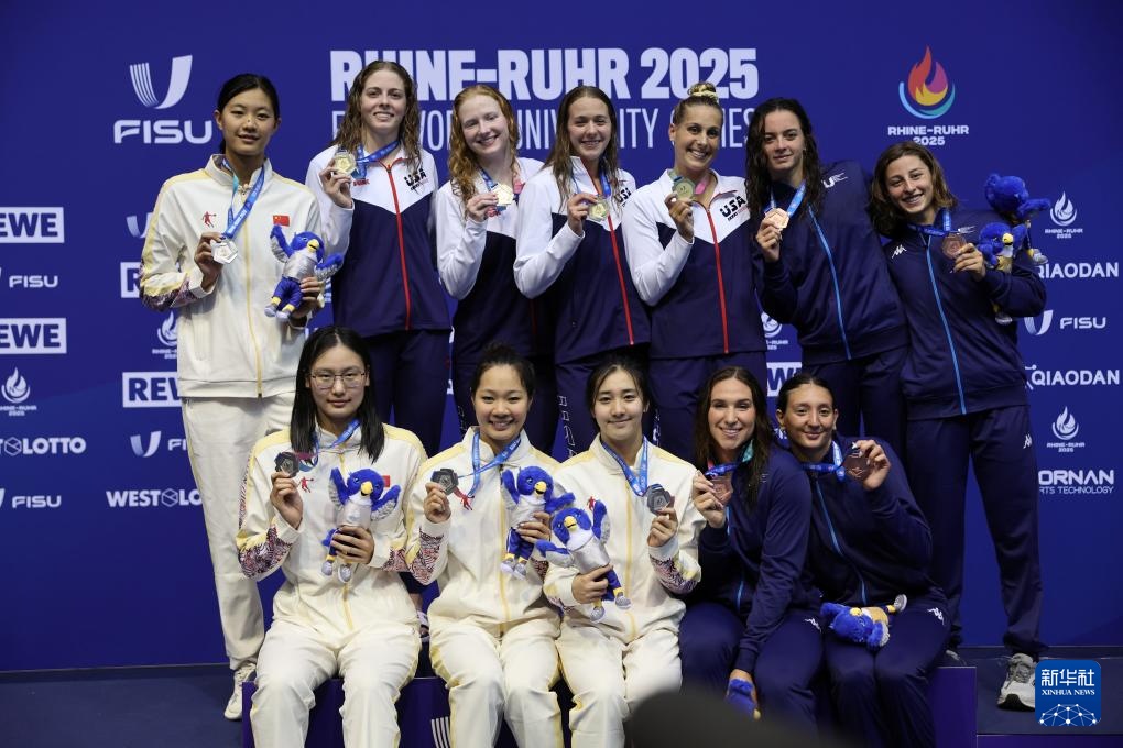 當日,在德國柏林舉行的2025年萊茵-魯爾世界大學生夏季運動會游泳女子4X100米自由泳接力決賽中,由劉姝含、葛楚彤、俞李妍、艾衍含組成的中國隊獲得銀牌。