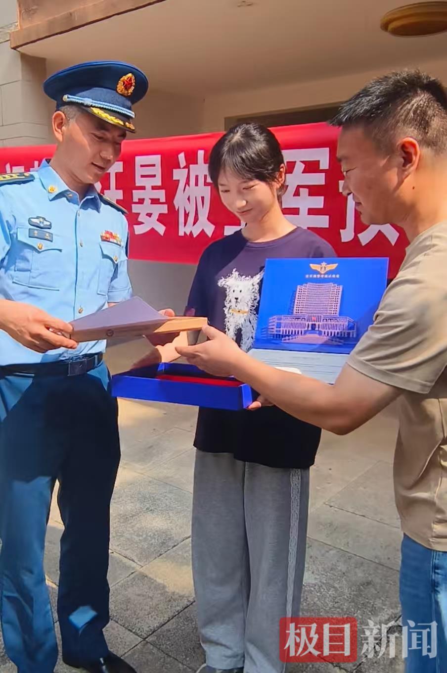 接過錄取通知書,李汪晏笑得很開心。她說,自己從小就有參軍的夢想。填報志愿時,看到空軍預(yù)警學(xué)院在湖北只招收一名女生,雖然知道會面臨激烈的競爭,她還是毫不猶豫地報名了。最終她脫穎而出,如愿拿到了這份錄取通知書。