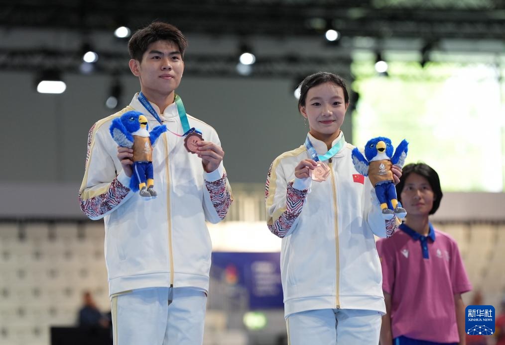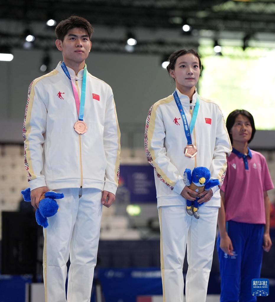 7月17日,并列季軍、中國組合潘美靜(右)/吳偉康在頒獎儀式上。新華社記者 王曦 攝