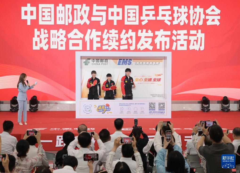 當日,中國郵政與中國乒乓球協(xié)會戰(zhàn)略合作續(xù)約發(fā)布活動在北京舉行。