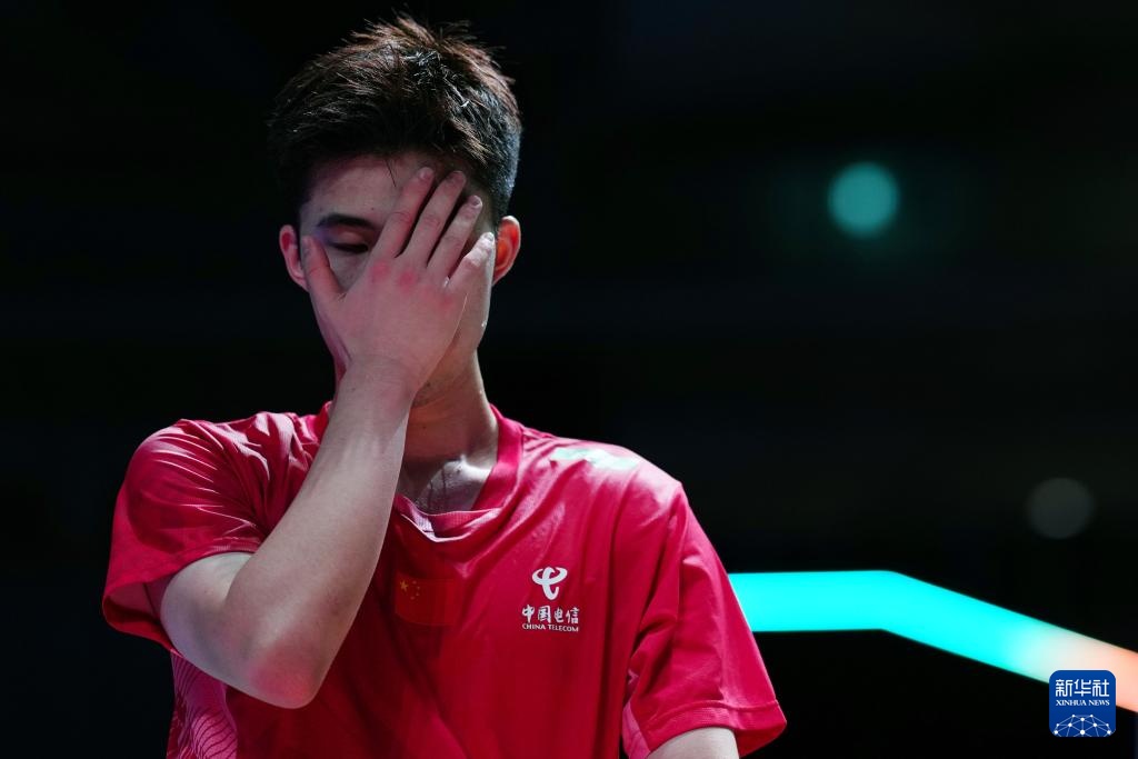 7月18日,翁泓陽在比賽中失分后。新華社記者 賈浩成 攝