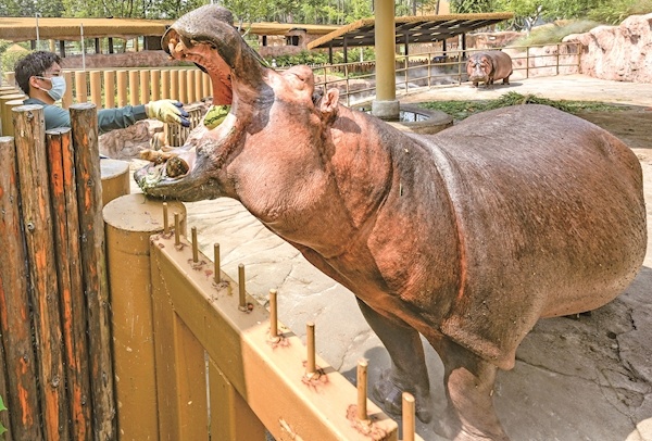 連日來,江城持續高溫,武漢動物園為動物們啟動了清涼消暑模式。河馬們不僅每天能泡澡,還可以吃上大西瓜;大熊貓、東北虎、赤猴等都住進了空調房,舒舒服服在20℃左右的房間里躺平;企鵝的活動區域不僅有空調、泳池,還有冰塊幫它們物理降溫,食物中更是添加了蔬果“涼方”。