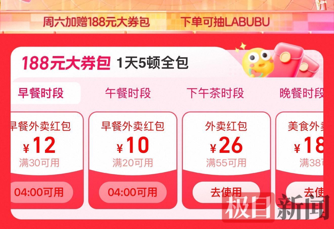淘寶閃購雖延續(xù)了“超級星期六”的活動,但極目新聞記者領(lǐng)取到的最大力度優(yōu)惠券是“滿20元減10元”的早餐外賣紅包和下午茶外賣紅包。抽取淘寶閃購免單卡,也僅獲得了幸運(yùn)值和一張“滿30元減10元”的當(dāng)日外賣券。