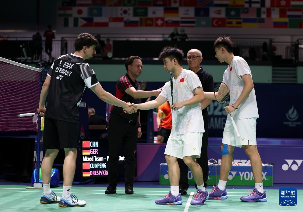 當日,在德國米爾海姆舉行的2025年萊茵-魯爾世界大學生夏季運動會羽毛球混合團體八分之一決賽中,中國隊3比0戰勝德國隊,晉級八強。