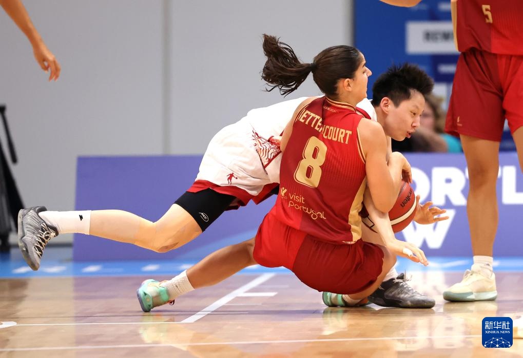 7月18日,中國隊球員唐子婷(左)防守葡萄牙隊球員莫塔·馬丁斯。新華社記者 張晨 攝