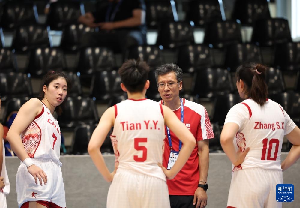 7月18日,中國隊教練李筍南(右二)在比賽間隙指導球員。新華社記者 張晨 攝