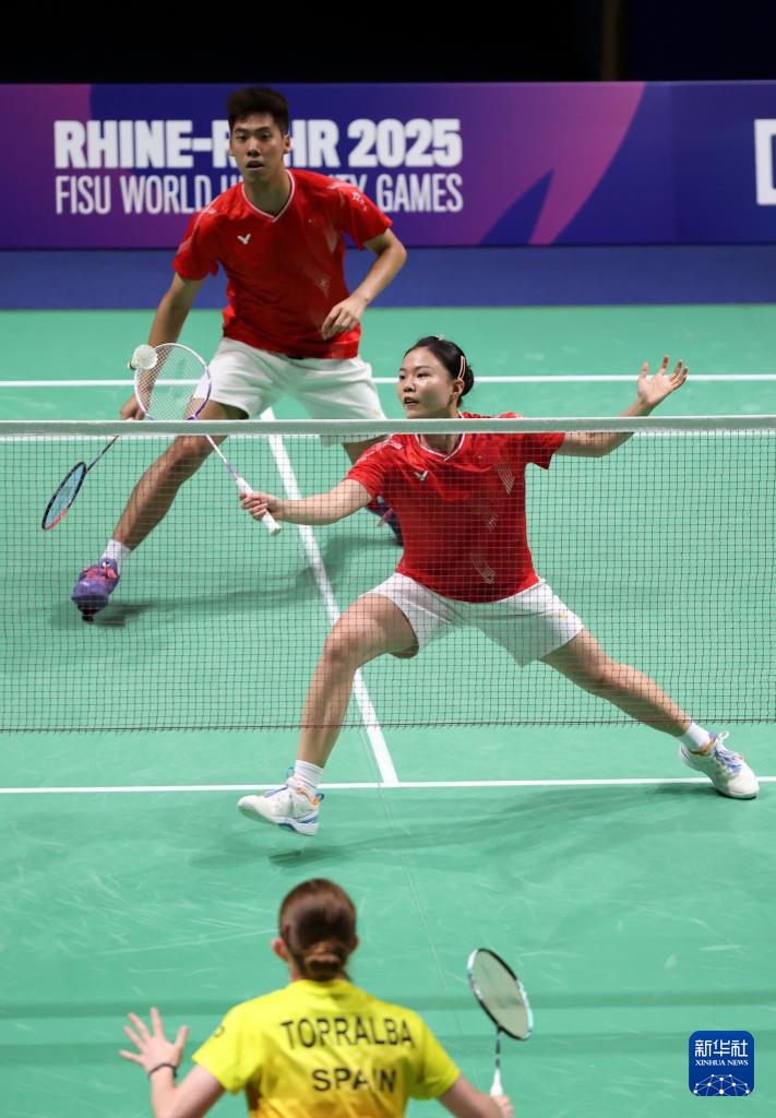 當(dāng)日,在德國(guó)米爾海姆舉行的2025年萊茵-魯爾世界大學(xué)生夏季運(yùn)動(dòng)會(huì)羽毛球混合團(tuán)體小組賽中,中國(guó)隊(duì)5比0戰(zhàn)勝西班牙隊(duì)。