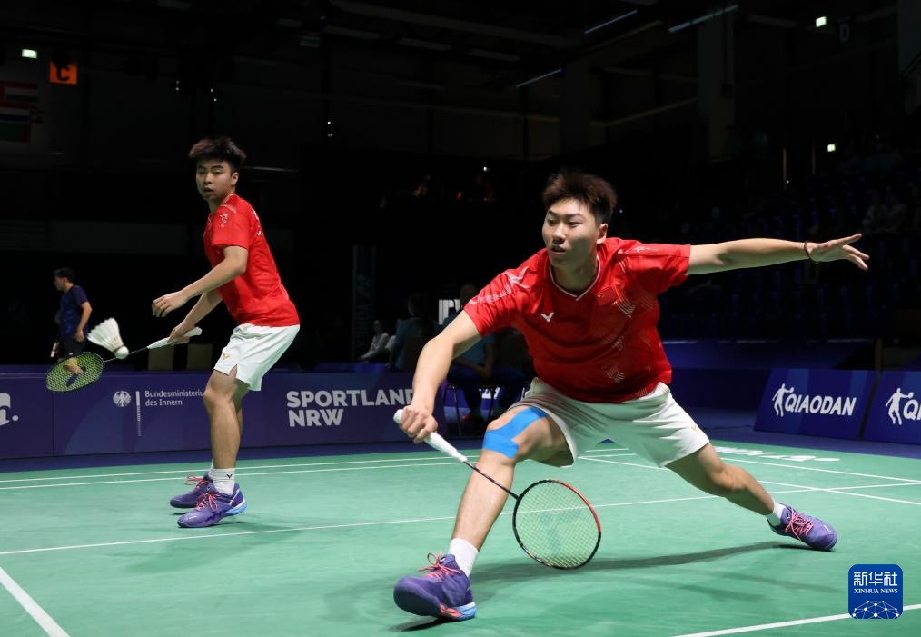 7月18日,中國(guó)隊(duì)組合崔赫宸(右)/彭建欽在男雙比賽中。新華社記者 胡星宇 攝