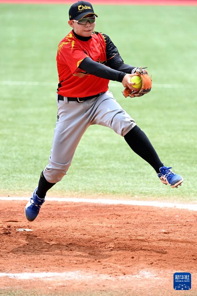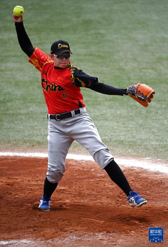 7月19日,中國隊球員柴燚楠在比賽中投球。新華社記者 李一博 攝