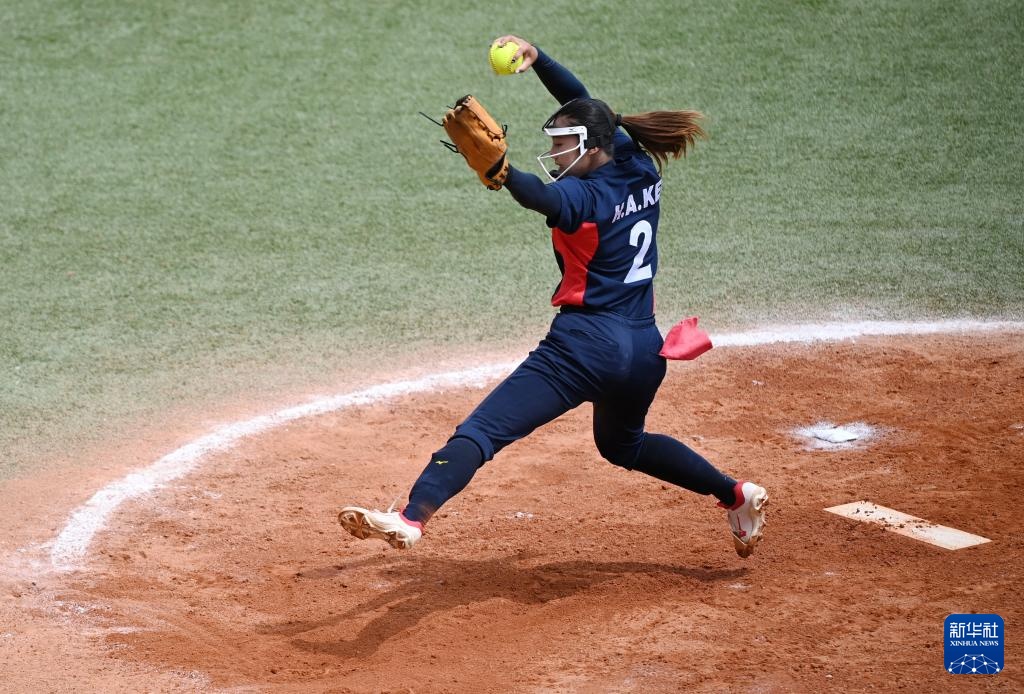 7月19日,中國臺北隊球員朱怡珊在比賽中投球。新華社記者 李一博 攝