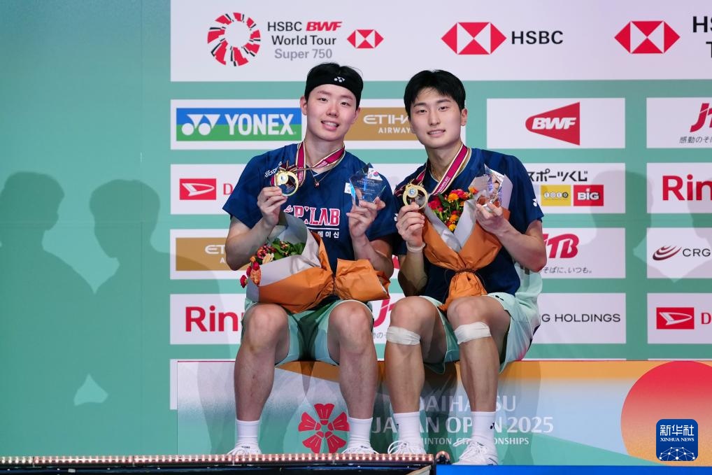 當(dāng)日,在日本東京舉行的2025年日本羽毛球公開賽男子雙打決賽中,韓國(guó)組合金元浩/徐承宰2比0戰(zhàn)勝馬來西亞組合吳世飛/伊祖丁,奪得冠軍。