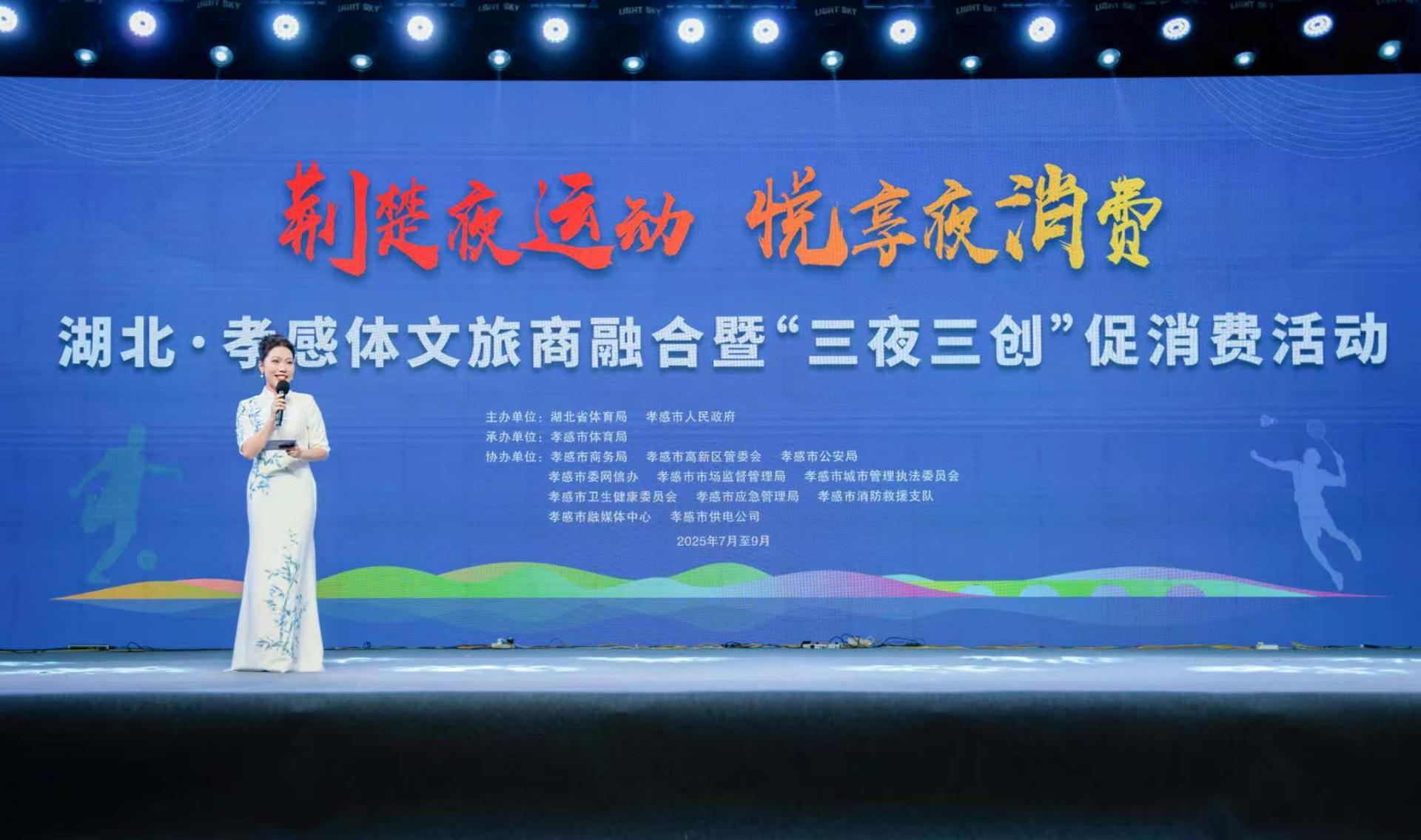 荊楚網(湖北日報網)訊(記者 葉輝 李好)7月19日19時30分,孝感市體育中心風箏廣場燈火通明、人聲鼎沸,湖北?孝感體文旅商融合暨“三夜三創”促消費活動正式啟動。湖北省體育局黨組成員、副局長駱啟義,湖北省體育局體育產業發展中心主任黃海,孝感市委常委、宣傳部部長吳瓊,孝感市政府副秘書長蔡國平,以及孝感市文旅局、孝感市商務局等相關單位領導,與數千市民共同見證這一提振消費、激活城市活力的重要時刻。