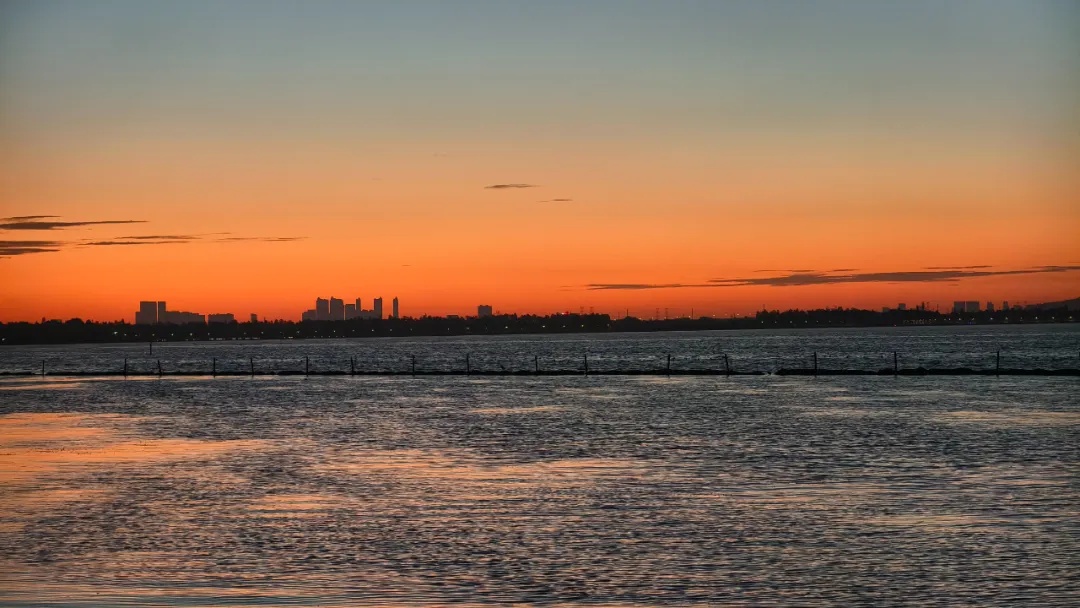 5時23分,隨著日漸升起,眼前一抹紅暈擴散至遠處天際,又隨著時間推移,漸漸淡了下來……
