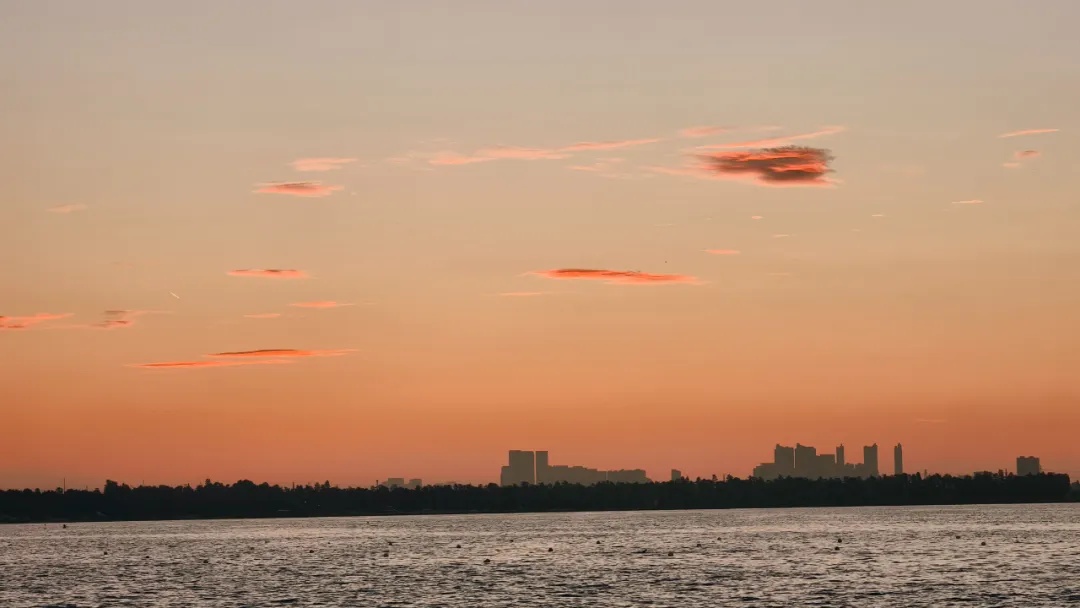 5時46分,天更為透亮,朝霞淺淺粉韻在天際,即將退場,“藍調”(武漢藍)登場,澄凈優雅……