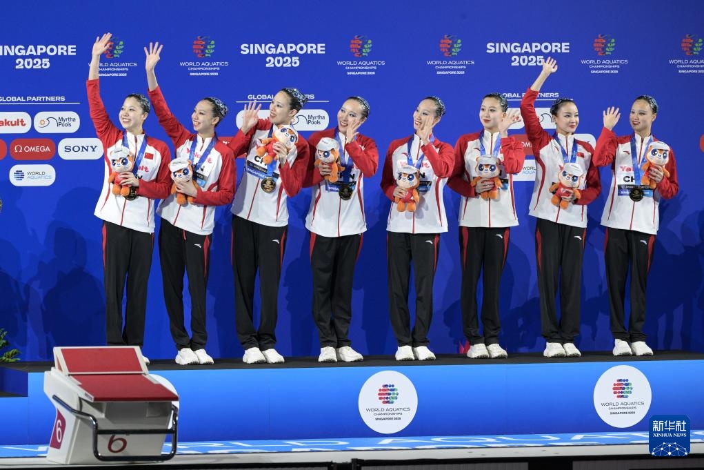 當(dāng)日,在新加坡舉行的2025年世界游泳錦標(biāo)賽花樣游泳集體自由自選決賽中,中國隊獲得冠軍。