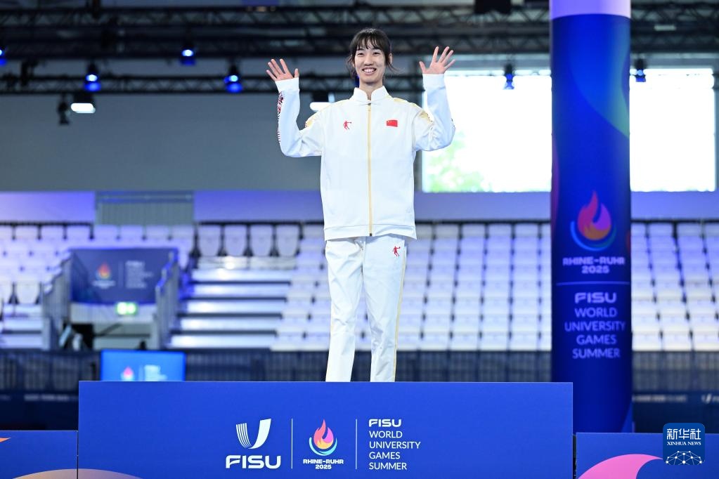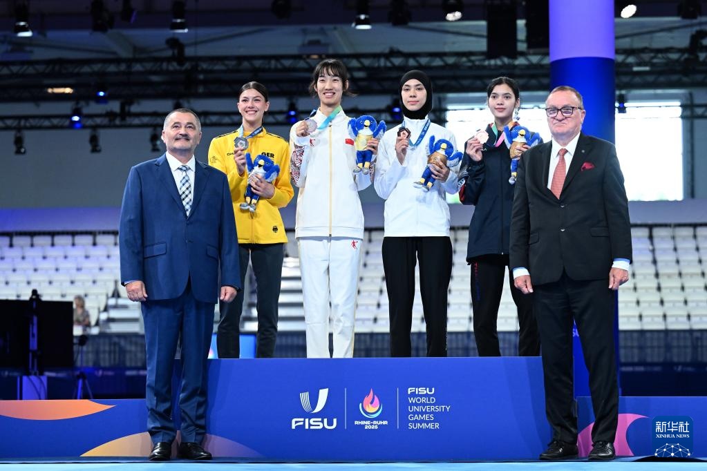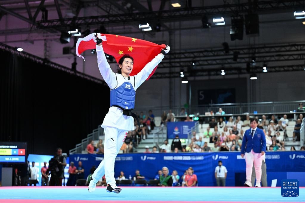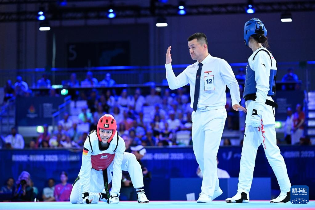當(dāng)日,在德國埃森舉行的2025年萊茵-魯爾世界大學(xué)生夏季運(yùn)動(dòng)會(huì)跆拳道女子49公斤級(jí)決賽中,中國選手馬靜月戰(zhàn)勝德國隊(duì)選手基斯卡爾特,獲得金牌。