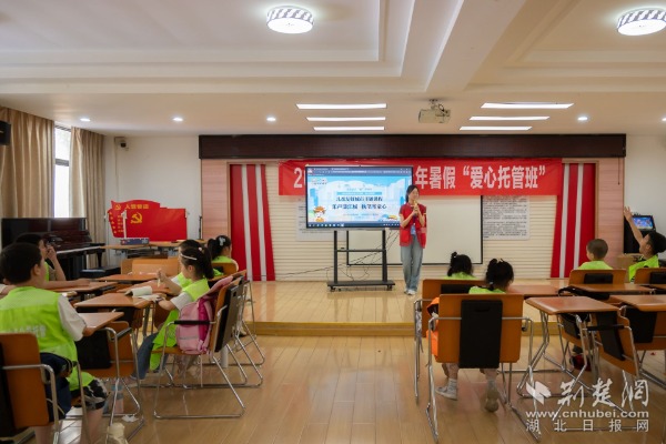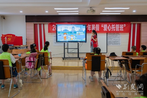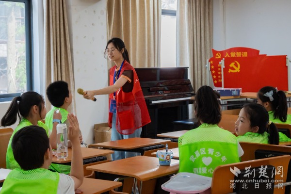 志愿者為青少年介紹武漢市兒童友好城市形象標識。 通訊員供圖
