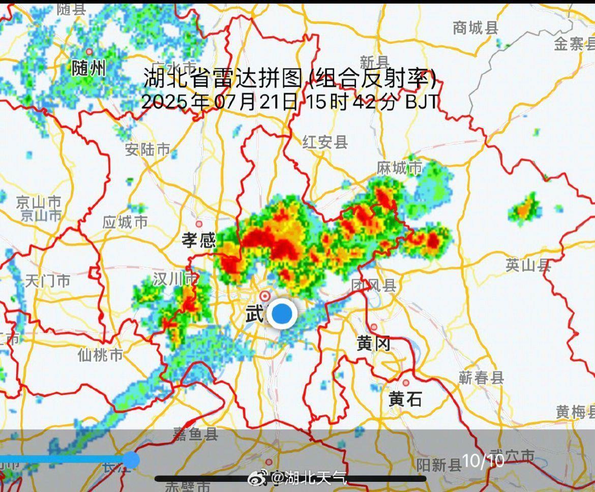 在漢口的朋友已報告“雨正在下”:東西湖風大雨大,好涼快!范湖附近剛剛下過!“我在花山還是晴空萬里!”市民徐女士說。東邊日出西邊雨,這就是夏日午后的天氣特色。湖北氣象部門通過雷達緊盯“坨子雨”動態:15時57分發布消息稱,注意午后“坨子雨”又來了!武漢北部出現較強回波,目前正向西南方向發展移動。