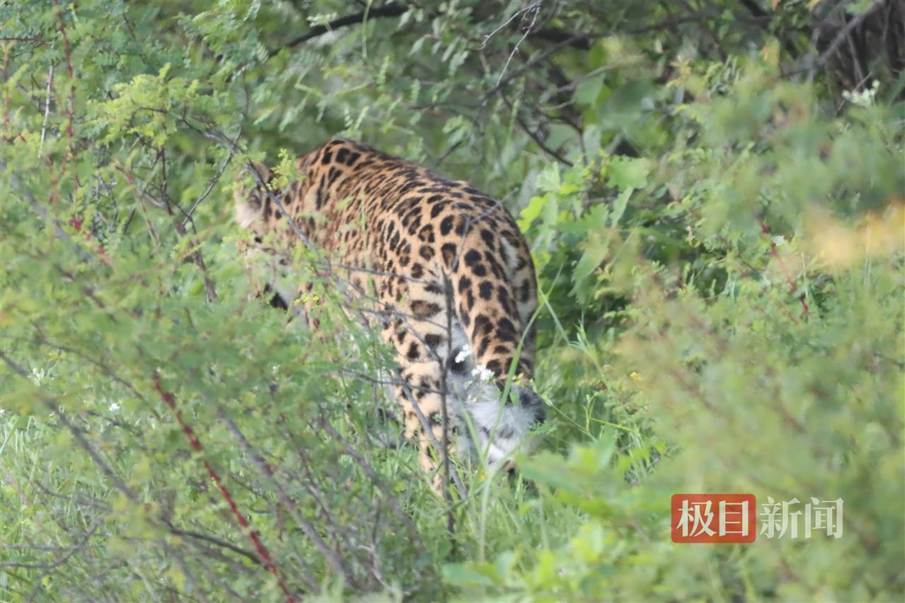 近日,多個網絡視頻顯示,山西沁源縣一村民在回家途中,偶遇一只華北豹。7月21日,當事村民劉先生告訴極目新聞記者,當時豹子扭頭和自己對視了一眼,然后淡定地走向山林。