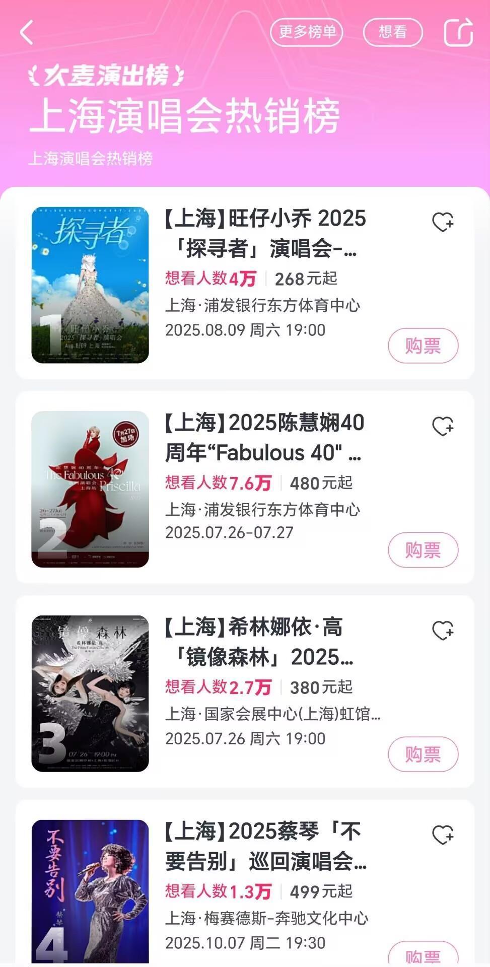 7月21日,極目新聞記者在購票平臺看到,“旺仔小喬”的演唱會最低票價為268元,最高票價為968元。目前268元看臺到768元內(nèi)場的票檔缺貨,僅剩768元看臺票和968元內(nèi)場票在售。該演出已有4萬多人標(biāo)記了“想看”,位列上海演唱會熱銷榜第一,超過了不少明星的演唱會。