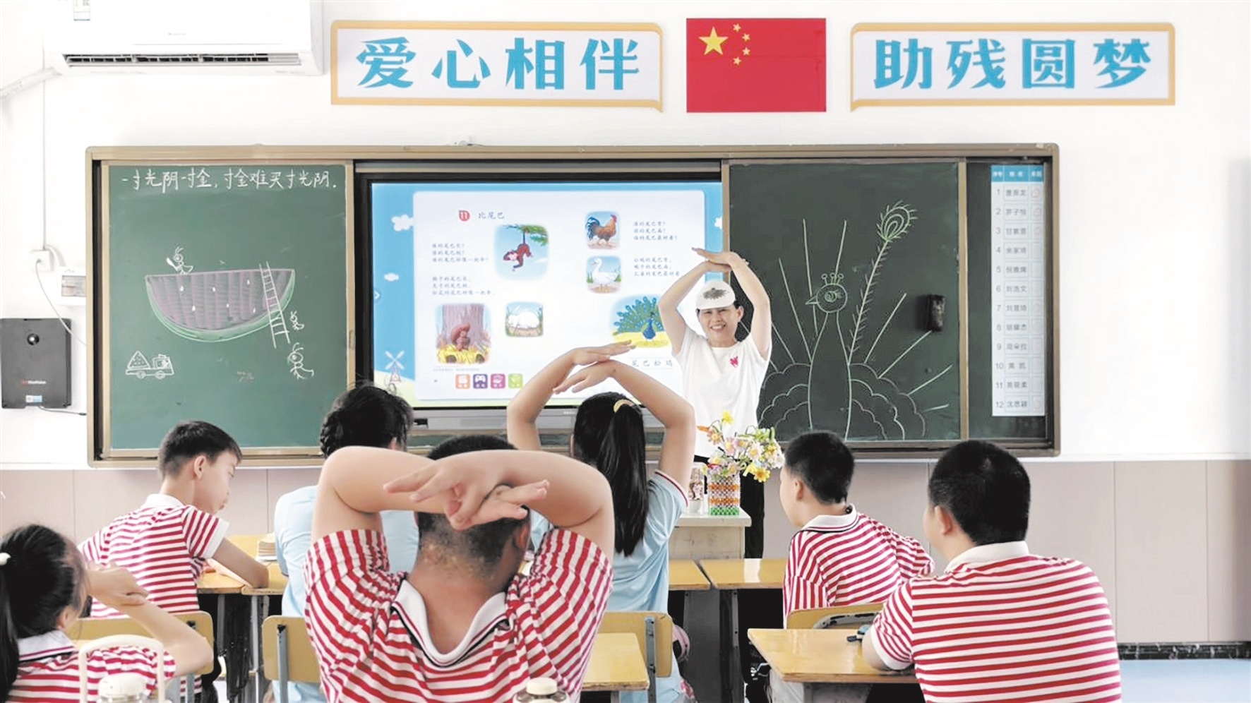 近日,在咸寧市特殊教育學校培智四班,患有腦癱的15歲學生小凱口齒不清,卻努力清晰地告訴記者:“我喜歡媽媽老師,媽媽老師愛我。”話音落下,一旁的雷會星老師瞬間紅了眼眶。
