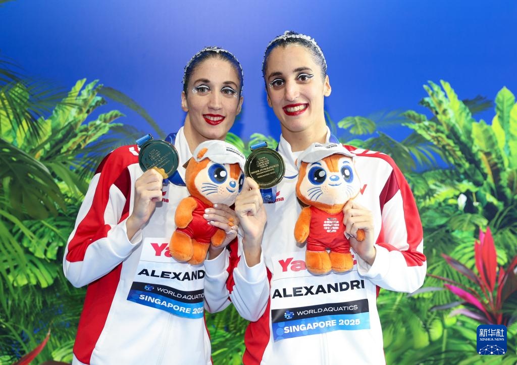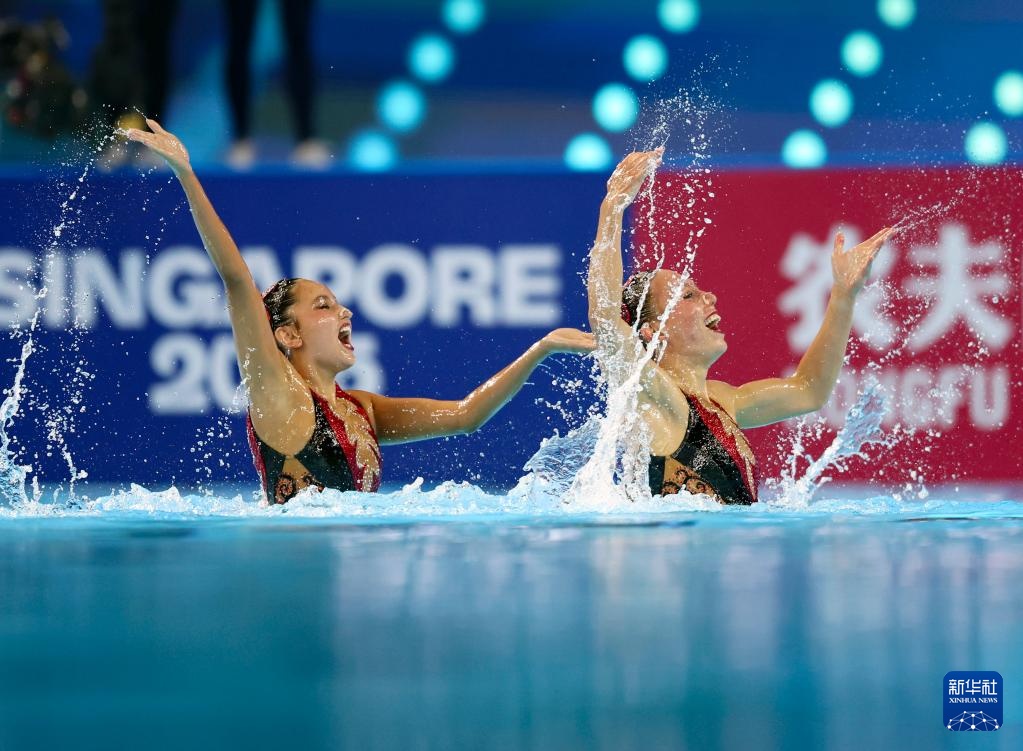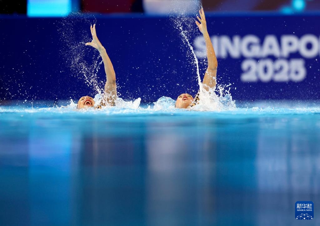 當日,2025年世界游泳錦標賽花樣游泳女子雙人技術(shù)自選決賽在新加坡舉行。
