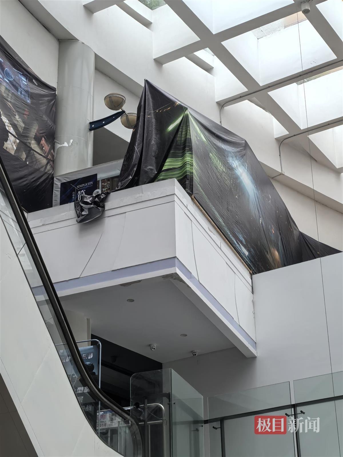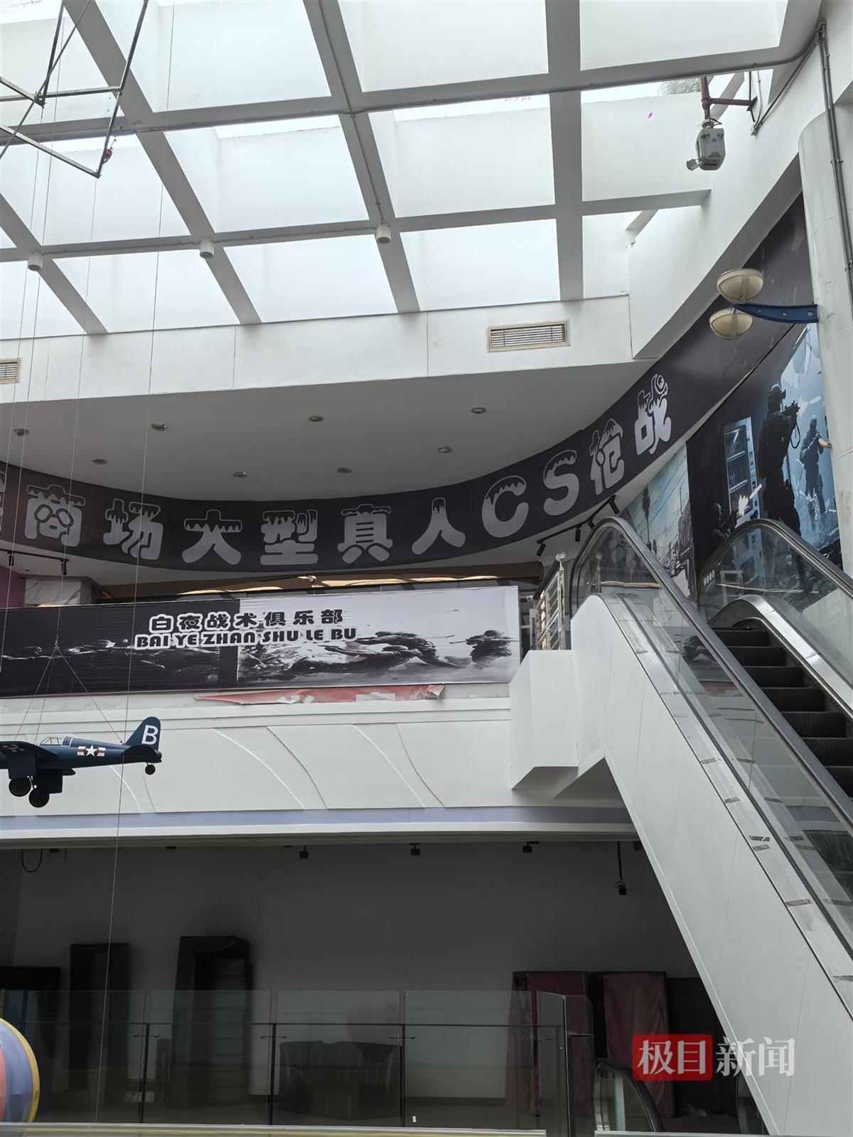 極目新聞記者看到,這家商場從二樓到五樓為中空結構,五樓真人CS店鋪多處可以看見廣告布,只有其中一個角落里的廣告布沒有封閉,而是打開著。