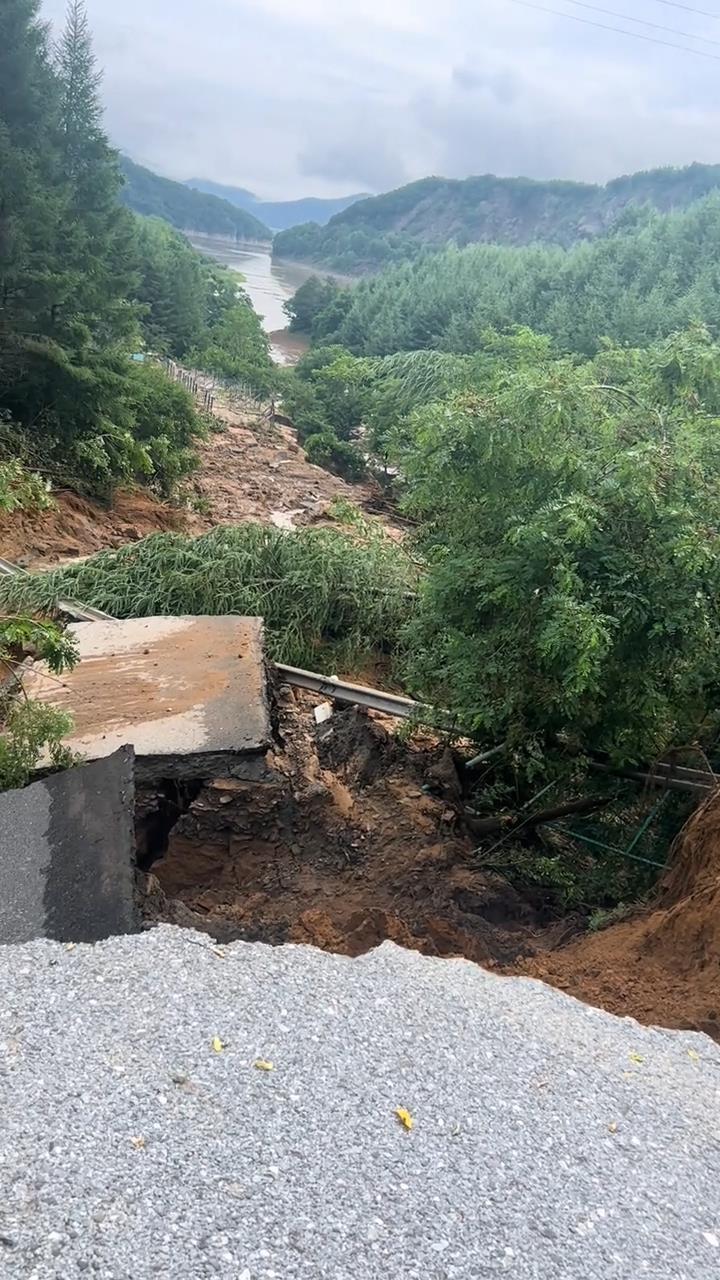 桓仁縣內(nèi)道路被沖垮(視頻截圖)