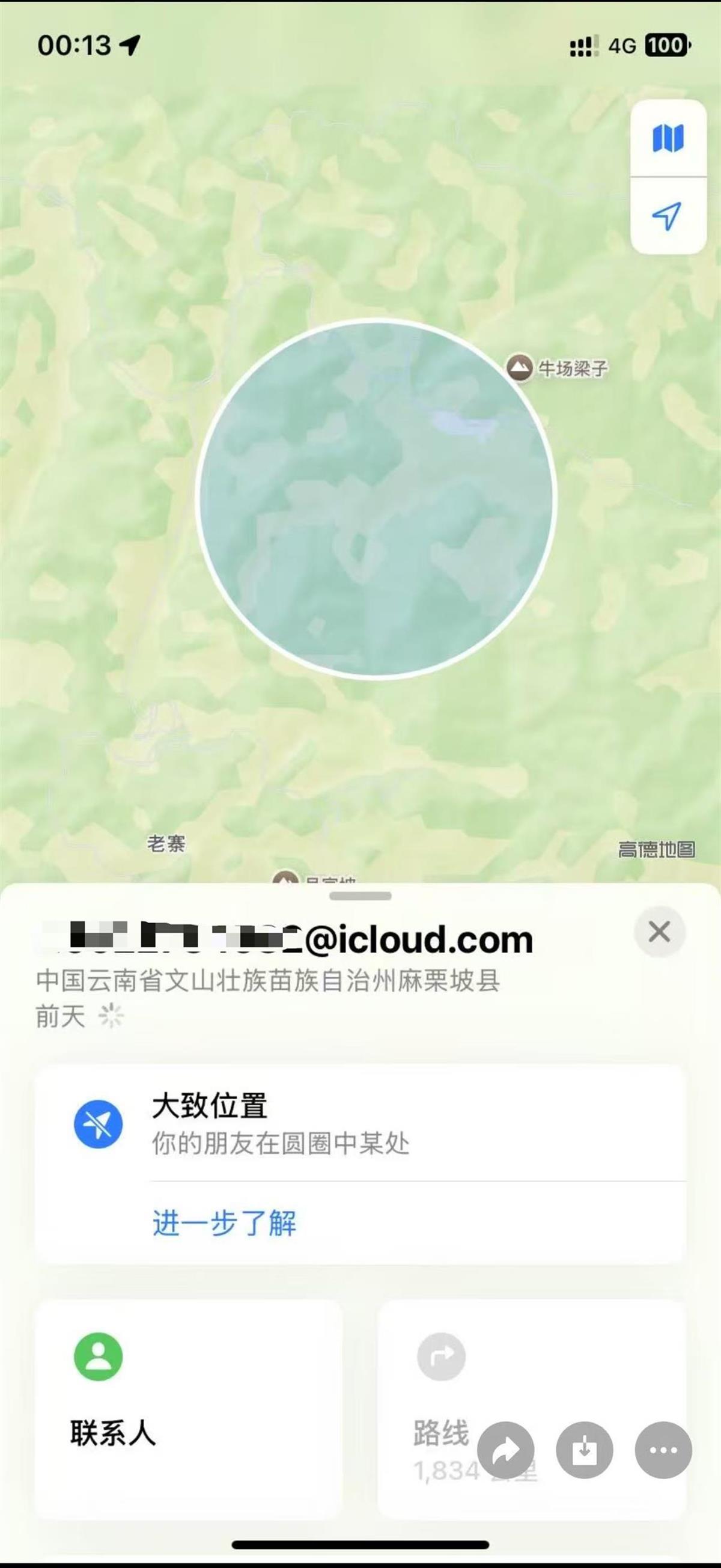 李先生稱自己調查了解到,李鑫浩7日中午在廣西南寧被人帶走,經過百色市西寧鄉后中途換了一輛車,再經過云南文山州廣南縣,8日深夜,兒子的定位最后在文山州麻栗坡縣董干鎮馬琳村附近一個邊境檢查站消失,“因為我兒子當時想著怕被騙,他和朋友用蘋果手機實時共享位置,最后位置離邊境線只有兩公里。”