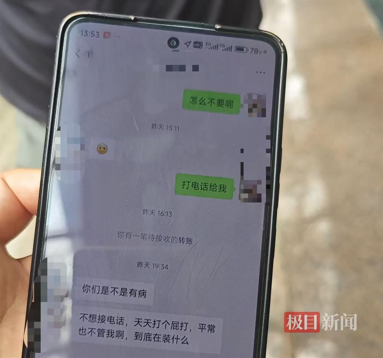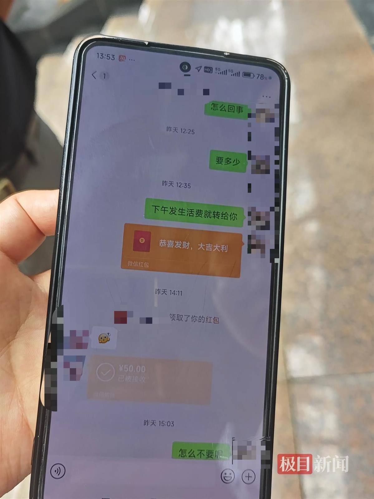 在蔡先生和蔡露7月21日的微信聊天記錄里,記者看到蔡先生問女兒為什么不回電話,對方發來一個微信余額僅剩幾元錢的截圖,表示自己沒有錢了,蔡先生問蔡露需要多少錢,并表示生活費下午就轉過去,隨即發了一個50元的紅包,但是對方在接收到紅包后,發出了一個疑問的表情,隨即將錢轉回蔡先生,并回復自己不想接電話,家里人平日里也不管自己,隨后將蔡先生和家里人微信拉黑。