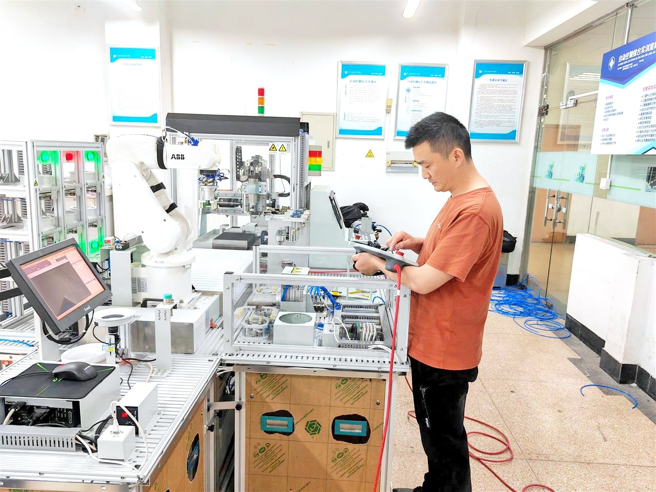 該校2022屆自動化專業本科班李志豪對高老師的教學印象尤為深刻:“高老師特別擅長將理論知識與實踐操作結合起來,講工業機器人那部分內容時,他直接視頻連線同事,通過投屏詳細講解控制面板和機器的運作原理。我們完成實訓任務后,他還會帶著我們重新操作一遍,幫助我們加深記憶。”